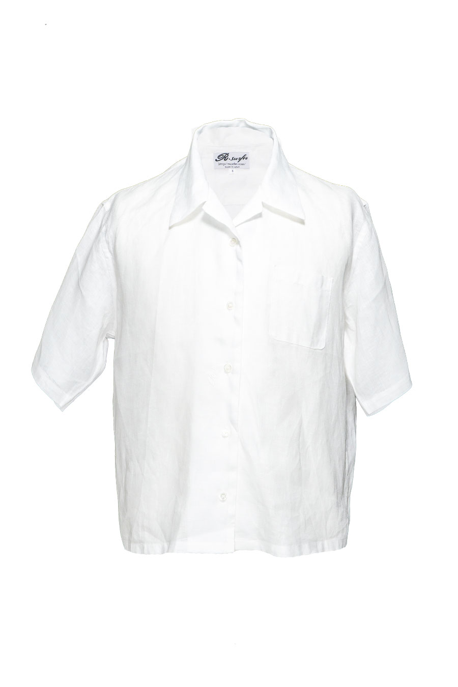 水着の上にサラっと羽織れる麻のシャツ S002LINENSHT-BKは麻でできた黒半袖シャツです。使い勝手を最大限に引き出すため、軽い感じで仕上げています。濡れた水着の上から遠慮なく羽織ってほしいです。