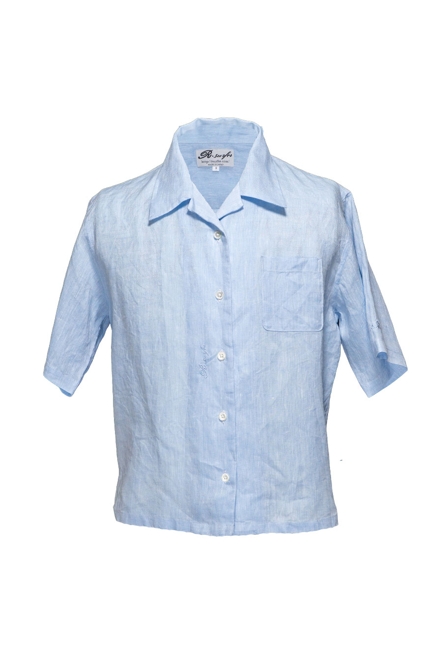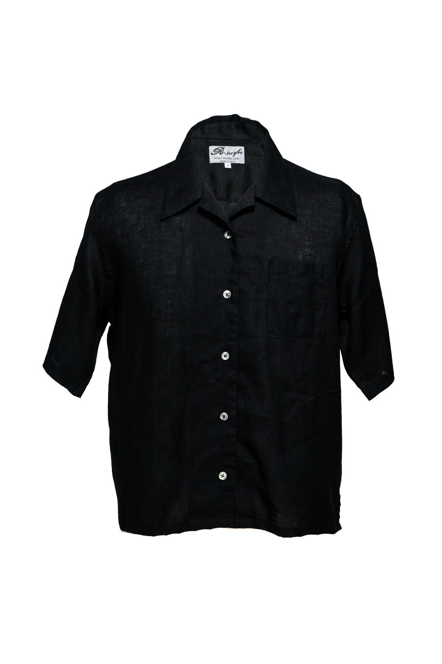 水着の上にサラっと羽織れる麻のシャツ S002LINENSHT-WHは麻でできた白半袖シャツです。使い勝手を最大限に引き出すため、軽い感じで仕上げています。濡れた水着の上から遠慮なく羽織ってほしいです。