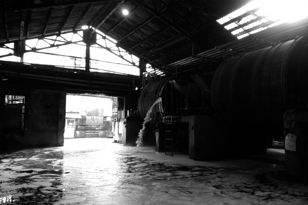 時間経過で原皮の繊維構造が朽ちてバラバラになってしまうところに橋を架ける、いわゆる『鞣し』によって皮が革となります。防腐処理、脂分の除去、特に神戸ビーフは上質な油が多く、また食品としての価値が高いため余す皮が少ないという希少性があるのです。なお、そぎ落とされた脂分は蛋白質として薬や化粧品など工業用など別の用途で生かされます。